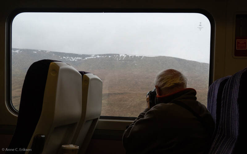 Før jeg kom til Carlisle hadde jeg en fantastisk togtur fra Leeds. Jeg hadde valgt via Carlisle bare fordi jeg så at det sto Yorkshire Dales National Park et sted på kartet. En togrute gjennom en nasjonalpark hørtes fint ut. Det vanlige er nok å ta tog fra Leeds til Glasgow via Edinburgh. Det er forøvrig også en flott tur, ble jeg fortalt, langs kysten store deler av veien. Men jeg tok altså via Carlisle. Jeg ante ikke at denne strekningen er viden kjent. De kom til og med en dame og solgte et hefte med informasjon om ruta med mye historisk info, jeg hadde heldigvis kontanter og takket være en annen togpassasjer fikk jeg vekslet til mynter. Min vekslevenn tipset meg av og til om hva jeg skulle se etter på ferden, en hyggelig fyr som reiste denne turen minst to ganger i året for å ta bilder.