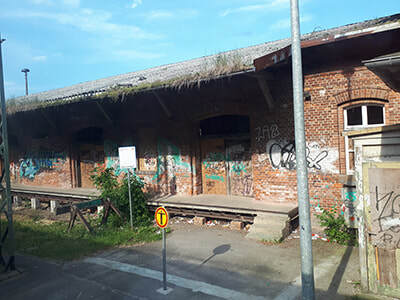 Vi hadde vurdert å dra til Leipzig, eller Berlin (vår favorittby), men valgte heldigvis Stralsund. Det viste seg å være et sted vi nå har på lista over steder vi gjerne besøker igjen. Det var varme dager, og da var det flott å være ved sjøen, der det alltid er litt vind. Stralsund ligger helt nord i Tyskland. Vi byttet tog i Berlin, der Anne løp rundt på stasjonen for å finne curry-wurst, uten hell. Fra Berlin tok vi et lokaltog til Stralsund. Det var et ekte lokaltog, stopp på alle stasjoner, så ruslet det videre. Det var trist å se alle de nedlagte stasjonene og fabrikkene.